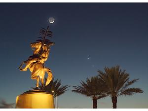The Unconquered Statue at FSU joined by the Moon, Venus, and Saturn in the background.